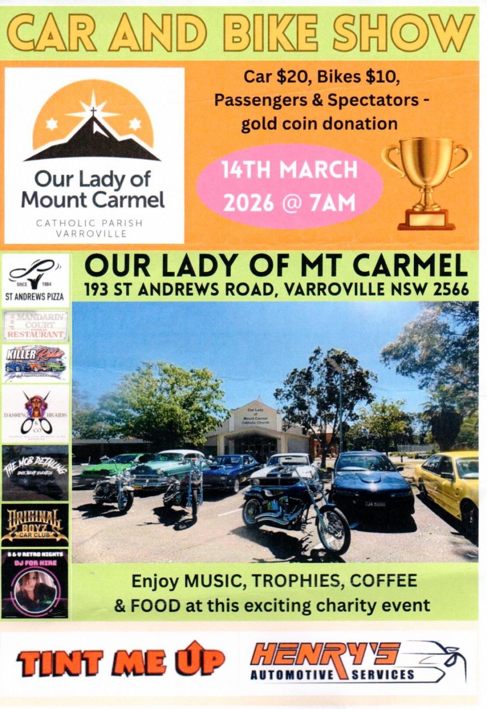 All are invited to attend the 1st Annual Charity Car & Bike Show at Our Lady of Mount Carmel Parish, Varroville, on Saturday 14 March from 7am.
